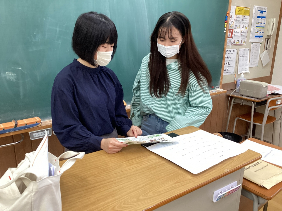 【3学年】作成した資料を先生(フェロー)が確認。より良い発表に向けて準備しています。