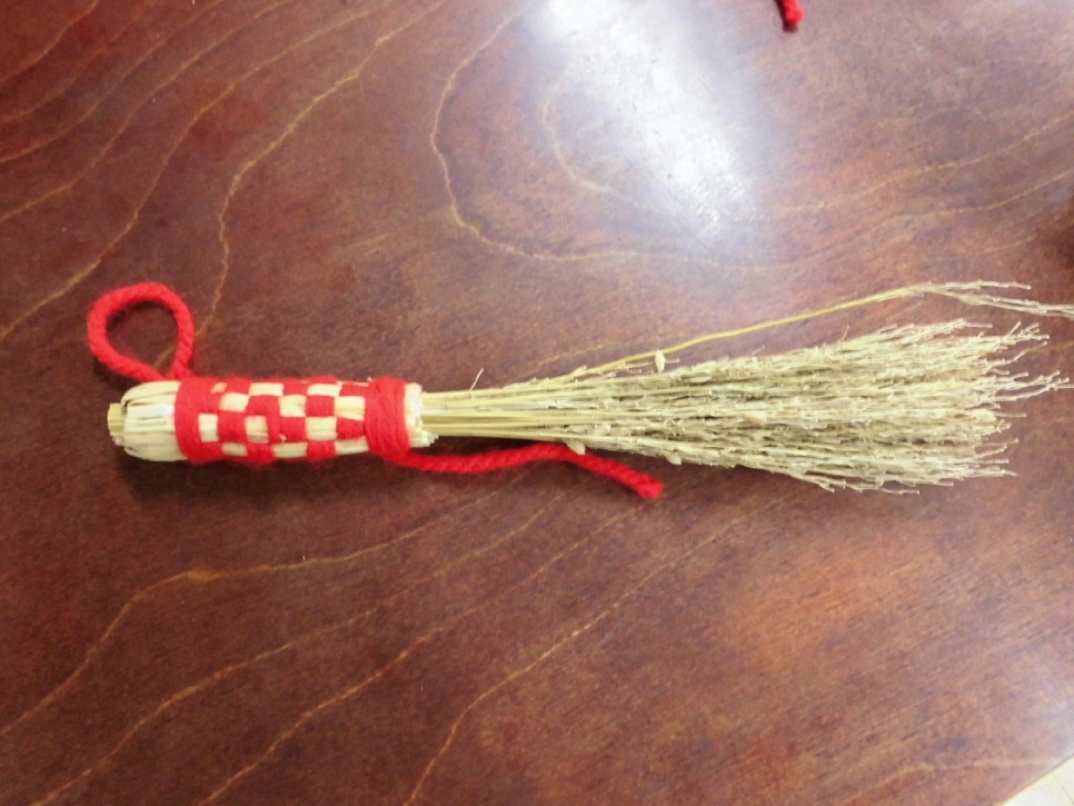 市松模様の持ち手が素敵な小帚が出来上がりました。一から作り上げた喜び、達成感に笑顔で「出来た!」と、とても嬉しそうでした。