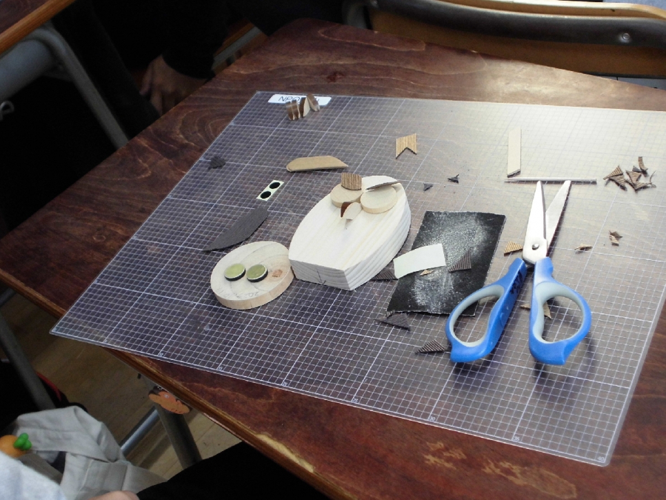 体験学習【ウッドクラフト(木工)】の様子②。フクロウ作りに必要なパーツです。細かなパーツがたくさんあります。出来上がりが楽しみですね!