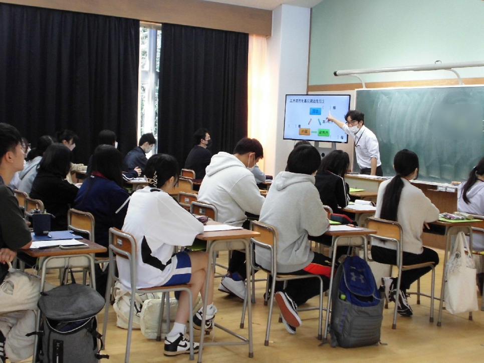 【政治経済】授業の様子です。日本国憲法の三大原則について学んでいます。皆さん真剣な眼差しで取り組んでいます!