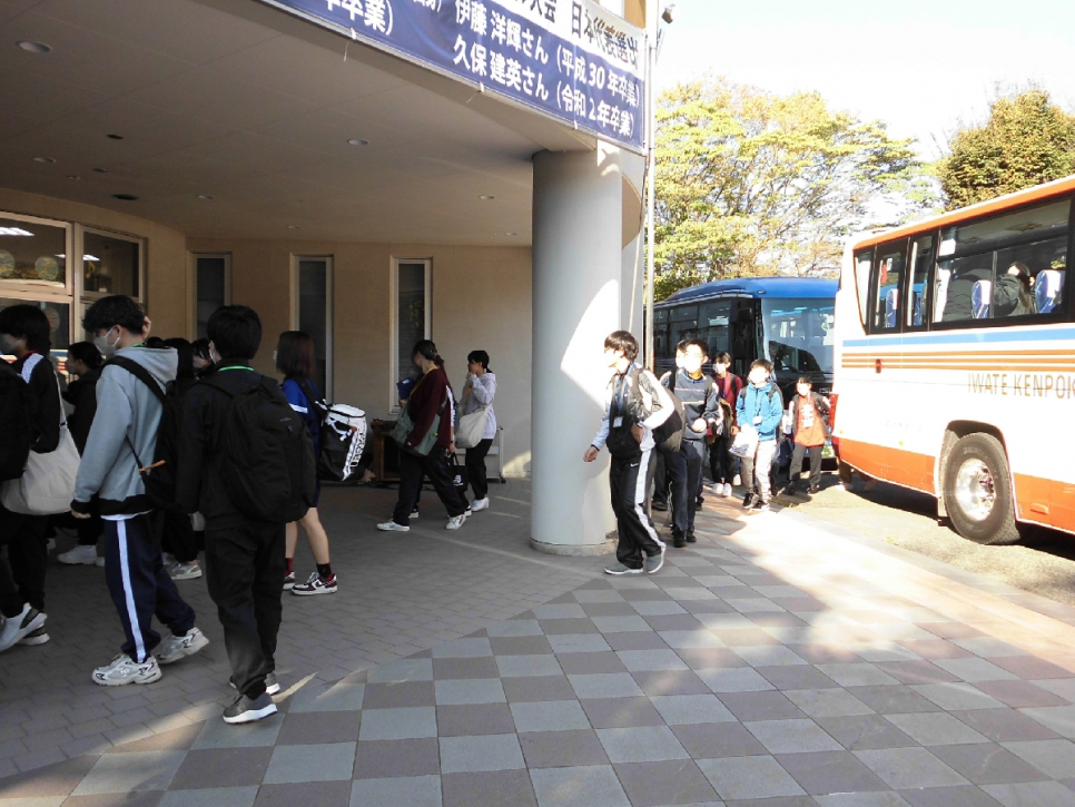 生徒達の登校の様子です。元気に挨拶をして校舎へ入っていきます。
