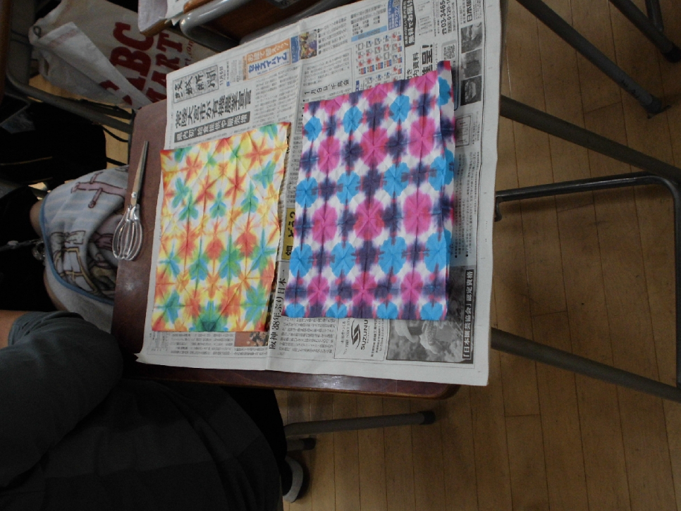 生徒が折り染めで作った作品です。