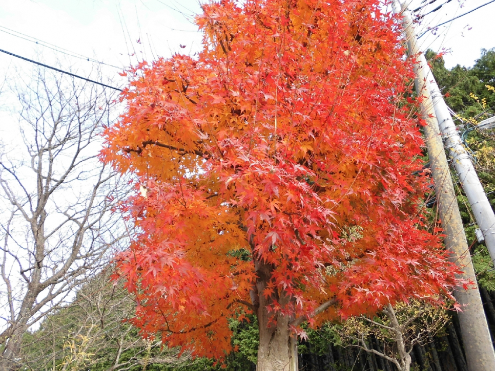 学校敷地内にあるもみじもまだ綺麗な赤色に染まっていました。