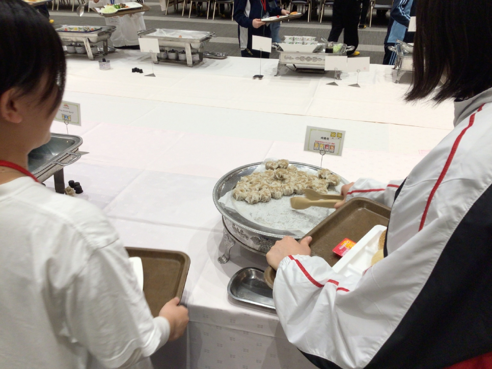 ホテルの朝食はバイキングなので、好きなものを自由に選んで食べられます♪焼売おいしそう!