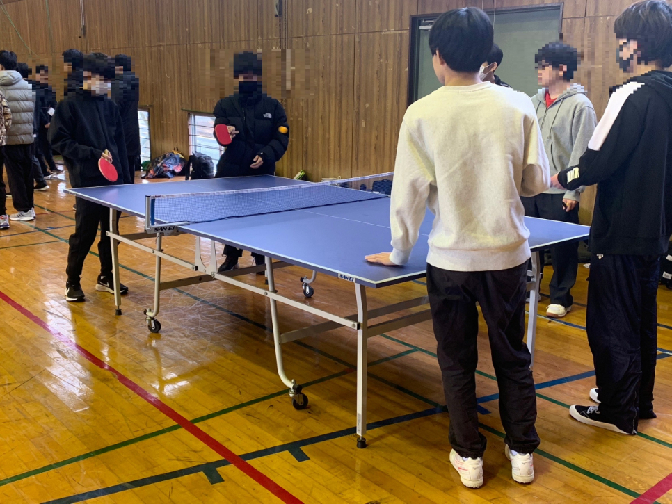 体育の様子:チームに分かれ卓球を行いました。ラリーは何回続けることが出来たでしょうか!?