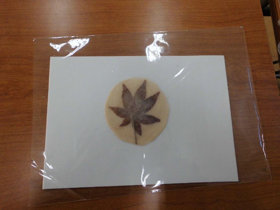 体験学習(紙漉き(簡易和紙)作り) モミジの葉を和紙の中に入れました。とても素敵に出来ています。和紙についても深く学ぶことが出来ました。