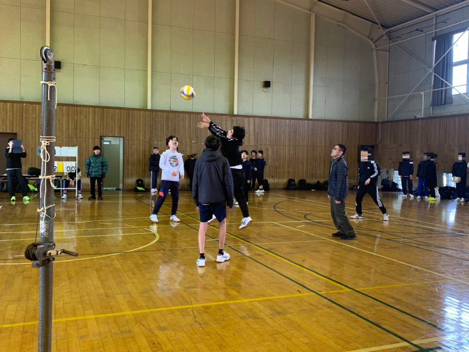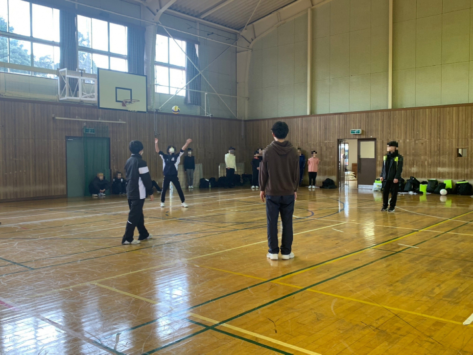 体育の様子:チームに分かれてバレーボールを行いました。鋭いサーブが打てたかな!?