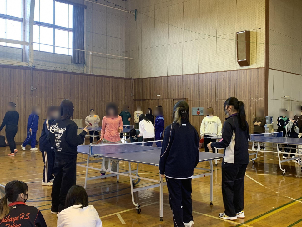 (体育)チームに分かれて卓球をしました。一球一球歓声があがり、楽しそう!
