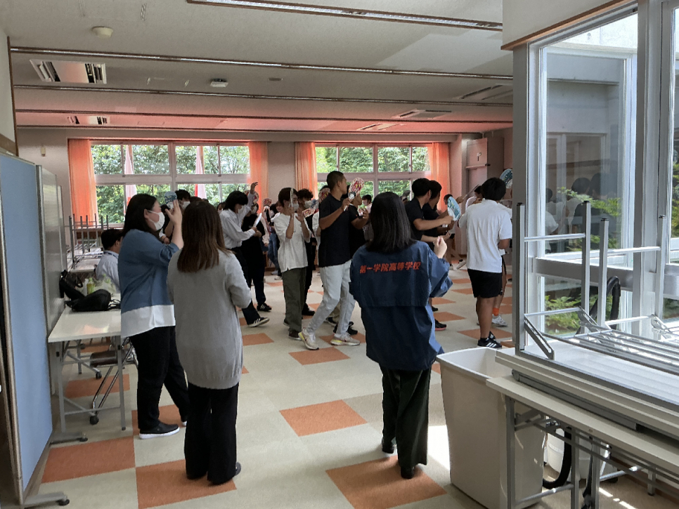 まずは、7月27日(土)に開催される第52回高萩まつりにむけて、授業の一環として流し踊りの練習会を行いました♪