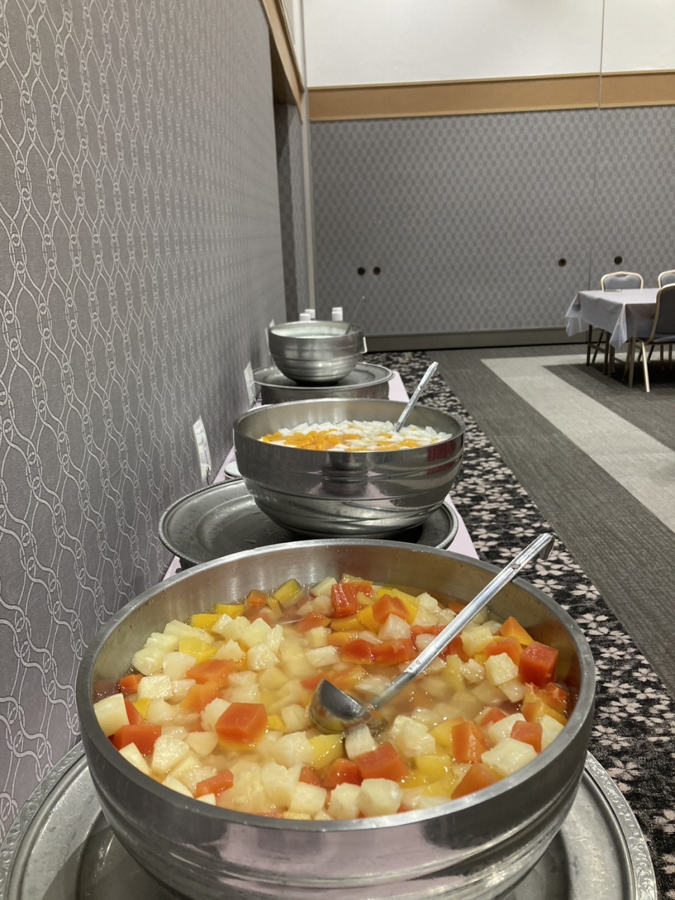 フルーツポンチやヨーグルトもあります。朝には嬉しいですね。