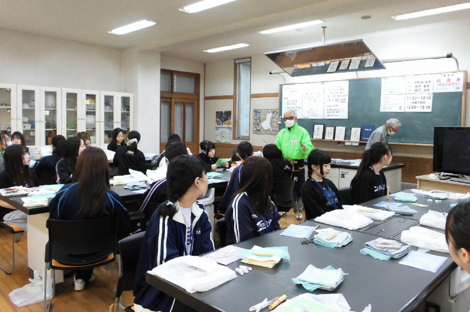 今回は、NPO法人里山文化ネットワークの方々を講師に迎えて行われる、体験学習紙漉き(簡易和紙)/切り絵の様子をご紹介します。