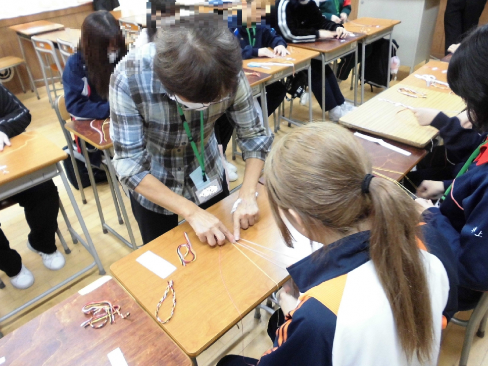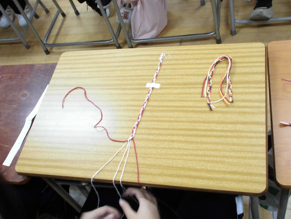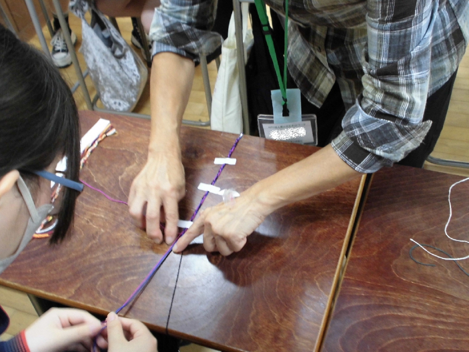 今回は、NPO法人里山文化ネットワークの方々を講師に迎えて行われる、【体験学習(織り編みミサンガ作り)】