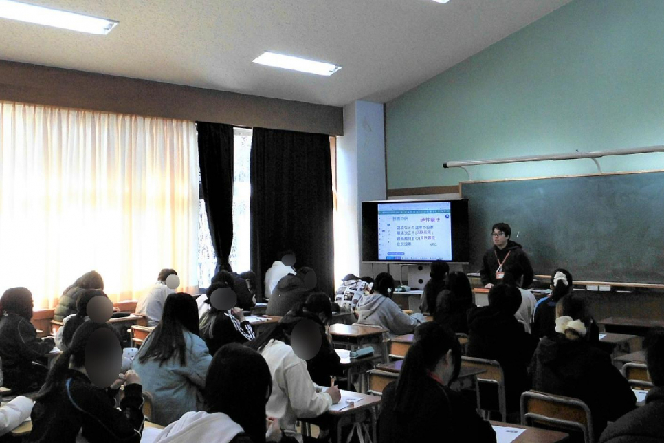 こちらは公共の授業の様子です。朝早い時間ですが、生徒たちは真剣に学習に臨んでいます。