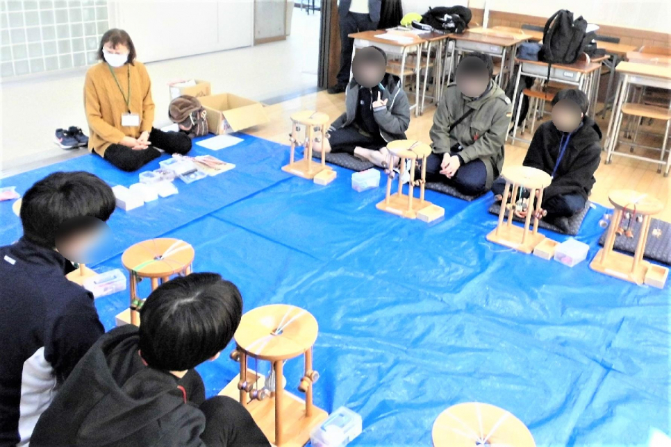 体験学習「組み紐」の様子です。生徒たちはワイワイ楽しそうに活動していました!