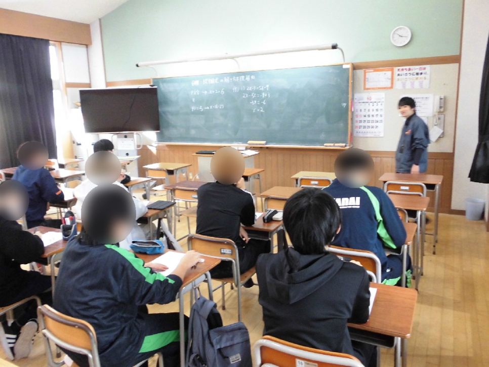 先生の「この問題分かるかな?」に対し、「はい!」と元気に手を上げてくれる生徒。明るく和やかな雰囲気の授業でした。