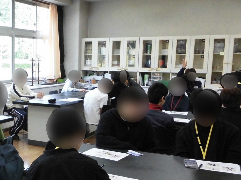 「書道Ⅰ」の授業の様子です。常用漢字も毛筆だとまた違って見えますね。
