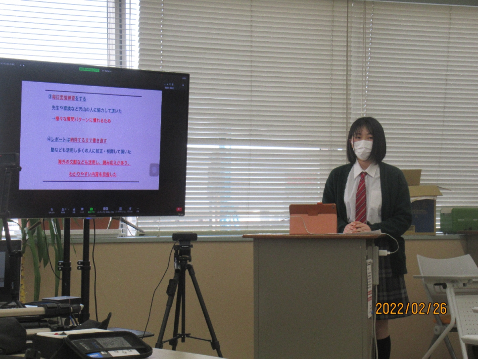 今回もZOOMを活用し在校生や保護者様、地域の方に生徒の発表をご覧いただきました。