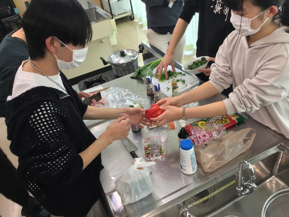大学生サポーターと一緒に地域の公民館をお借りし実際の商品を作成しました。