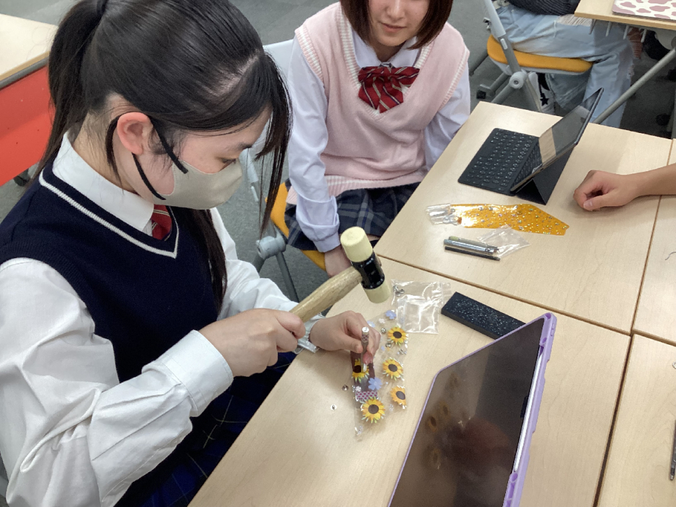 プラスチック製のトンカチとシートを使って、トントントン!と小気味良い音が教室に響きます。