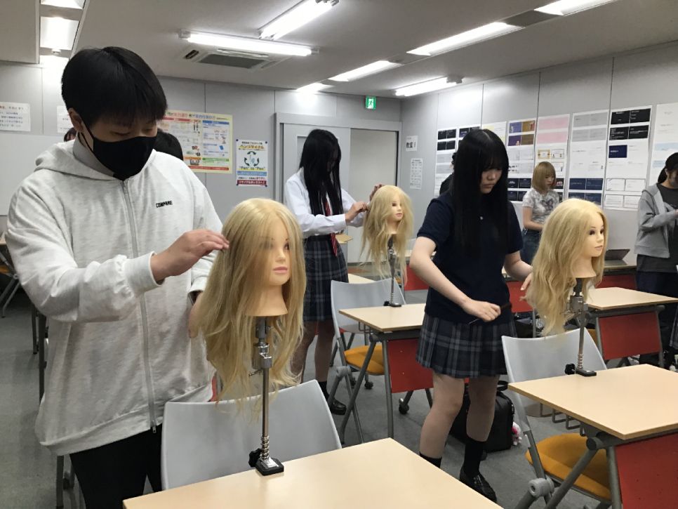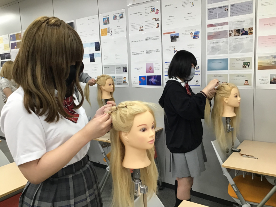 最後には、ヘアアレンジをやったことのない生徒も、こなれた手つきの生徒も、