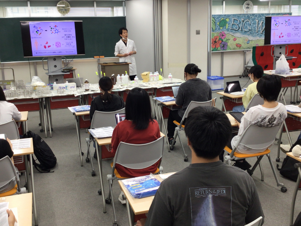 薬学について学び、アロマ作り体験と指示薬実験を行いました!