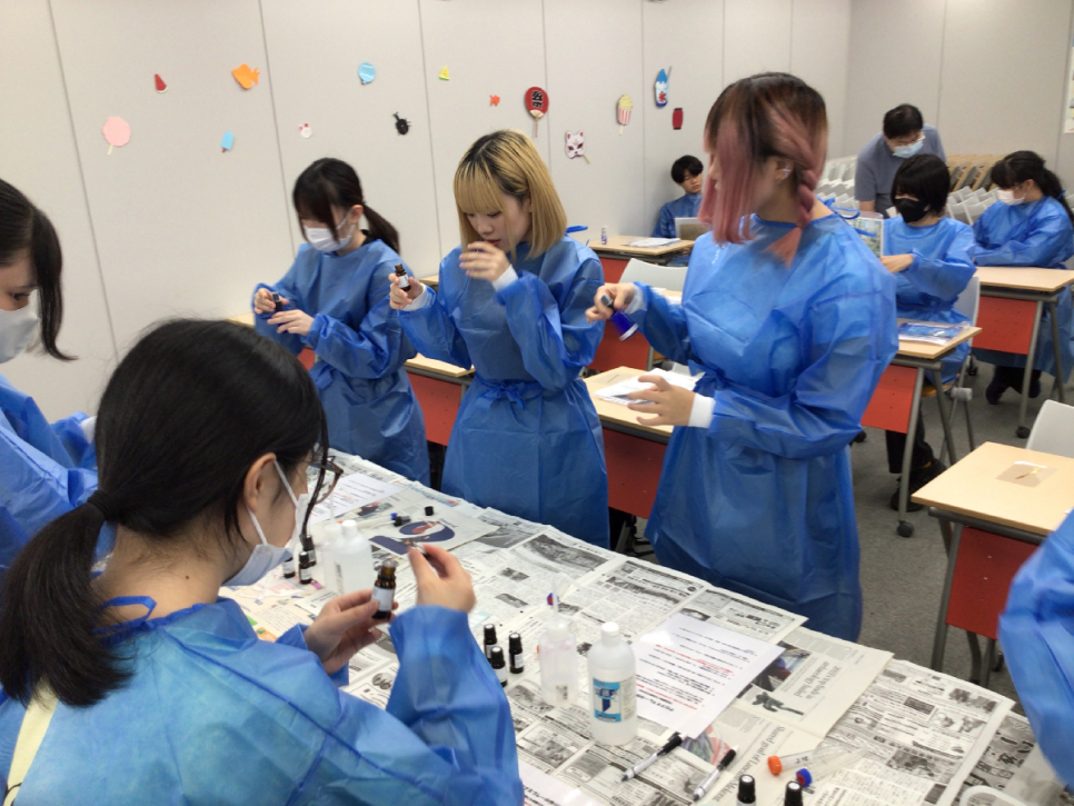 綺麗な色が浮かび上がった瞬間、生徒の関心の声が聞こえてきました。