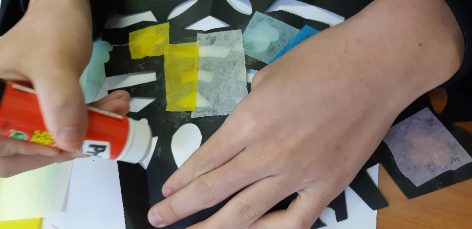 あらかじめ模様を切り取った黒画用紙に