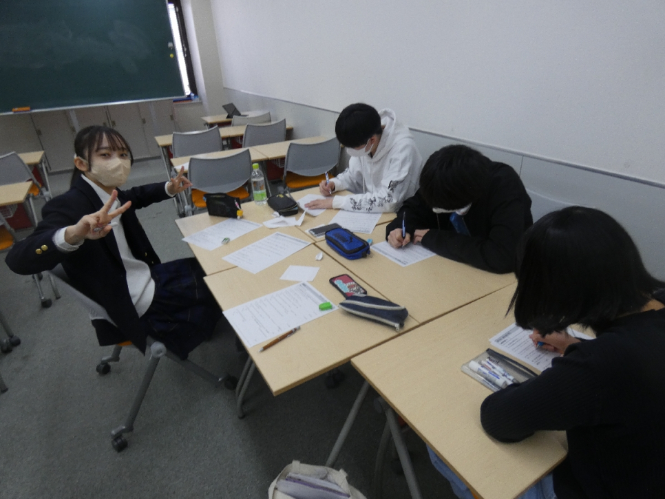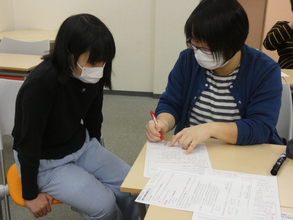 一人だとなかなか進まない勉強だけれど、みんなで一緒に解くと楽しんでわからないところを教えあいながら進めるということが写真からも伝わってきますよね♪
