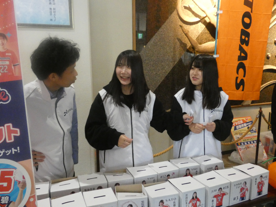 この日はハンドボールチーム「アランマーレ」のホームゲームボランティアに生徒が参加してきました。