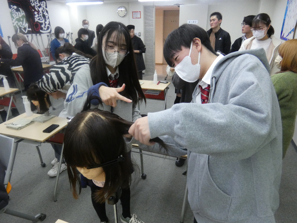美容師に興味を持っている生徒も多かったため積極的に質問する姿も見られました。