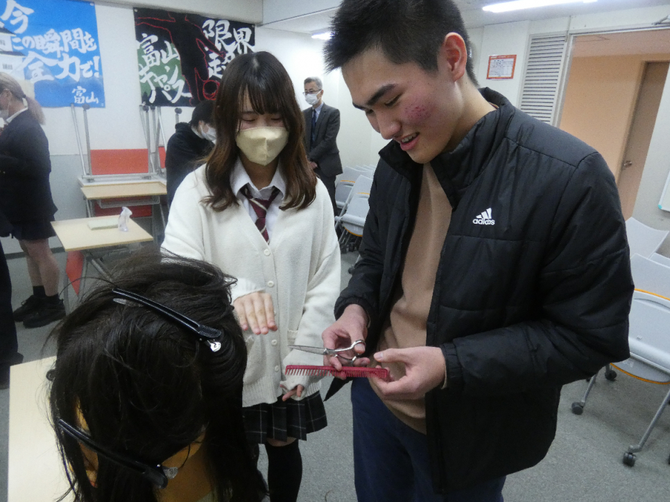 ヘアカットを始めて体験した生徒からは「実際に美容院に行っている時は髪を切るだけなら簡単そうに思えたけど、