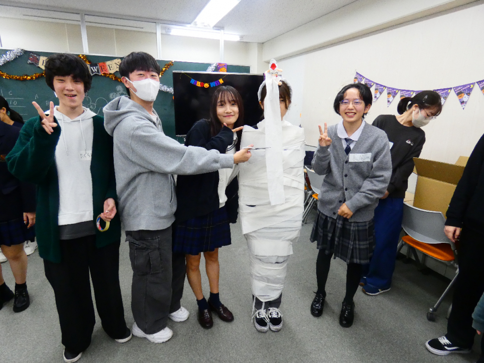 チロルチョコ探し・ミイラづくり・すっぱいカルピス・ジェスチャーゲームの4つのゲームで競い合いました。