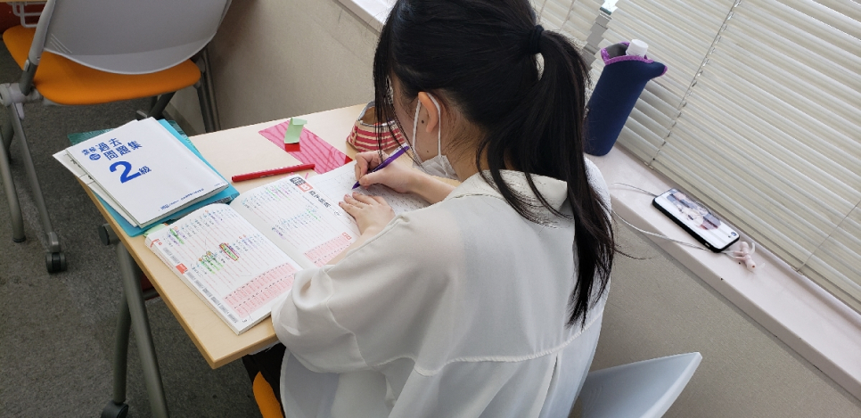 今回は日本漢字能力検定(漢検)の様子を投稿します。試験中の様子は撮影できませんので、試験直前の様子をお伝えします! 邪魔にならないように後ろから撮影しています・・・。