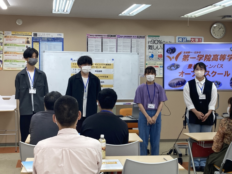 午後からはオープンスクールが開催されました。キャンパス長からの学校説明、体験授業、ピアサポーターへの質問コーナー、入試説明を行い、最後に個別相談を行って、オープンスクールは終了しました。