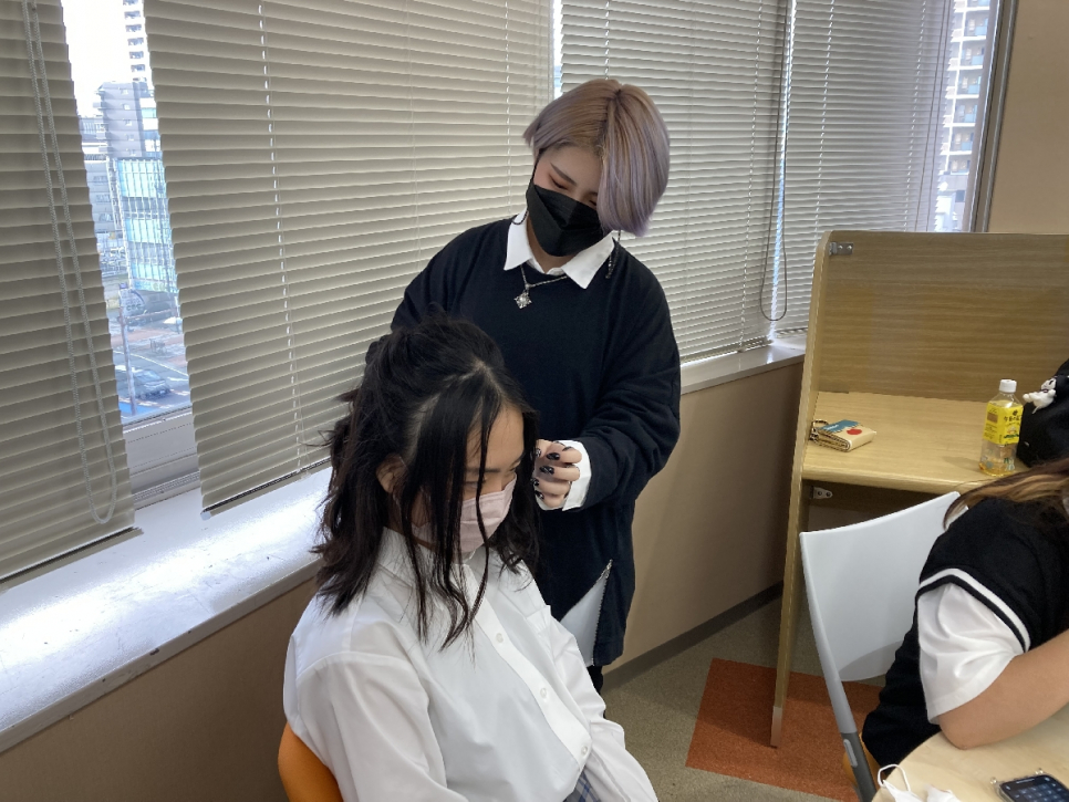 中等部の生徒も参加し、先輩にヘアアレンジをしてもらいました!素敵です♪
