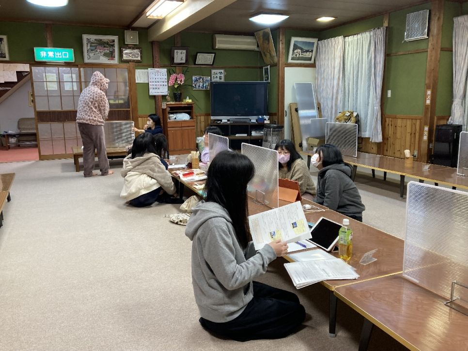 3日目夜の女子宿舎ではテストに向けてみんなでお勉強♪