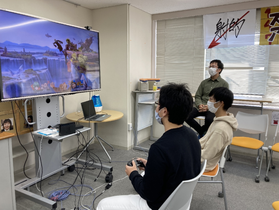 そして豊橋の一大イベントといえばゲームサークルによるスマブラ大会!今年はトーナメント班と通常対戦班の2つに分かれて楽しみます。激闘の末なんと1年生の2人が勝ち上がり、勝敗を分け合ったのでした。