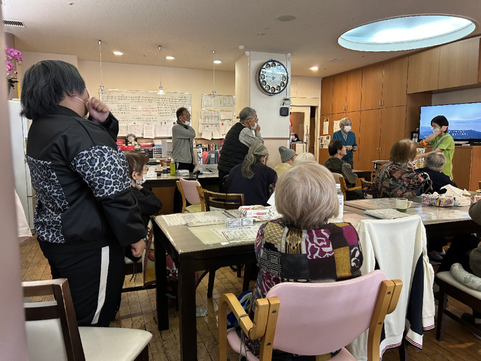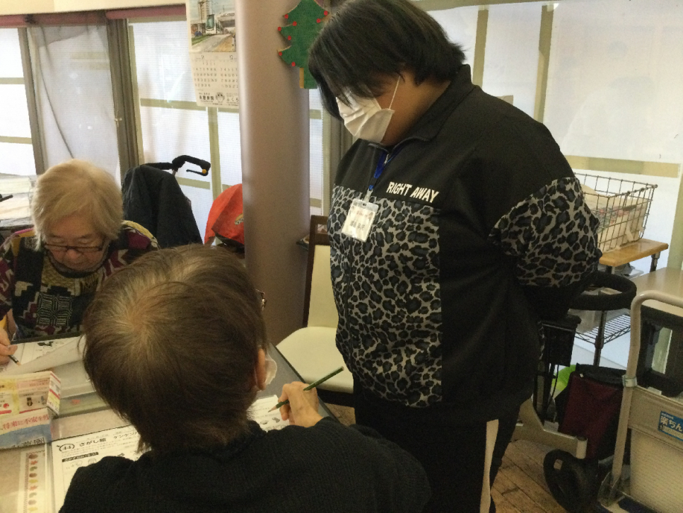 施設利用者の皆さんとの交流は、世代も違うので普段のコミュニケーションよりも難しかったようですが、
