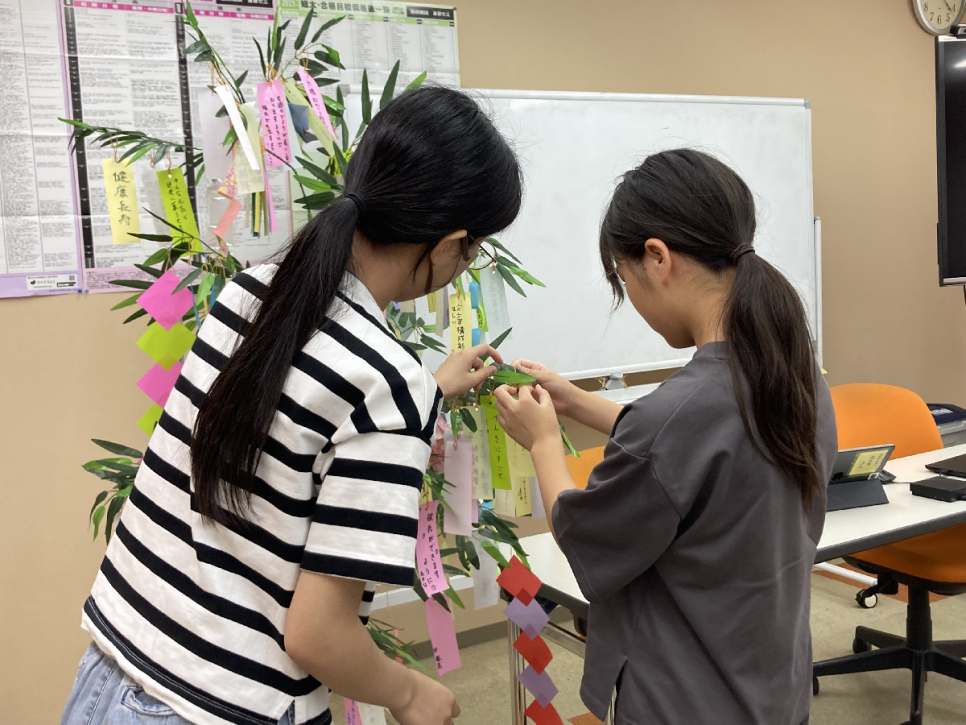 後半はまず七夕から少し経ってますが短冊を書きました。 保護者の方やピアも一緒に思い思いの願いごとを書いていました。