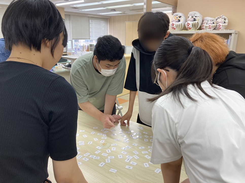 その後はレクリエーションタイム!今回は「バースデーライン」「自己紹介」「歌詞かるた」を行いました。