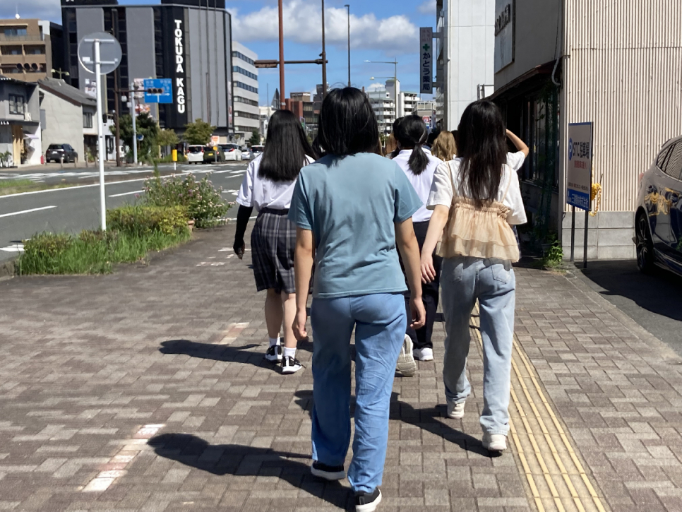 避難場所まで歩いて向かっているところです!