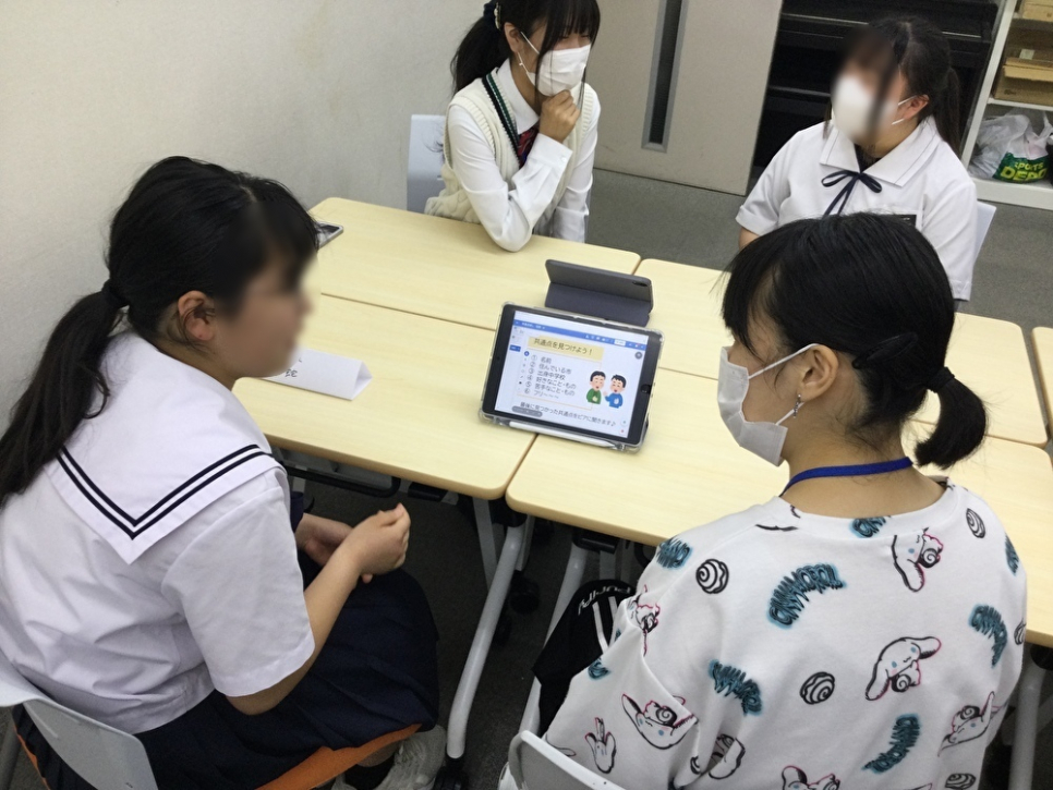 ②在校生ピアサポーターとの交流タイム(共通点探し、ピアサポーターへ中学生より質問、学校探検など)