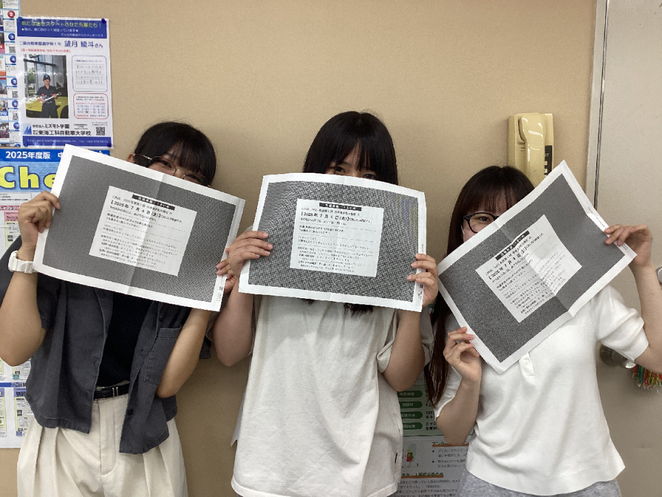 試験が始まるまで、個人で最終確認をしたり、友達と問題を出し合ったりするなどそれぞれ合格に向けて頑張っていました!