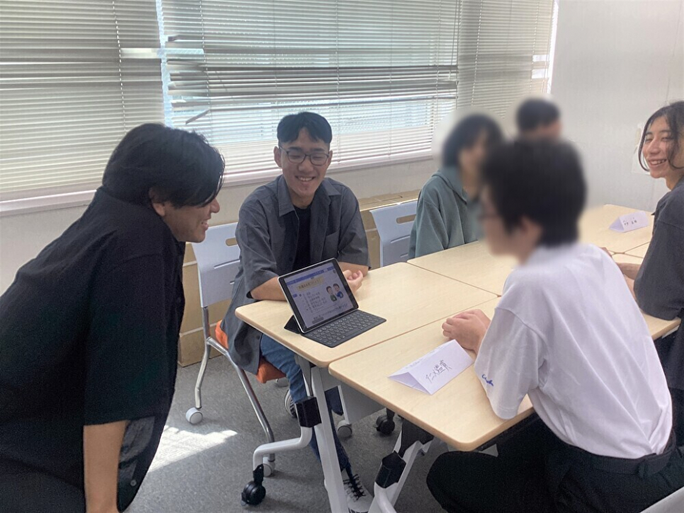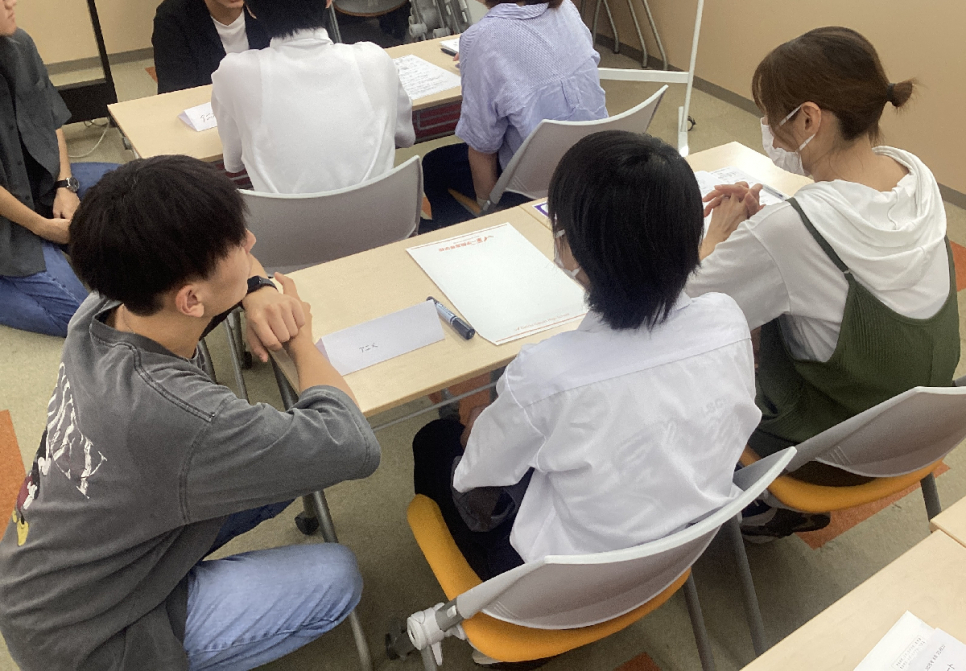 ピアサポーターに学校生活について質問中