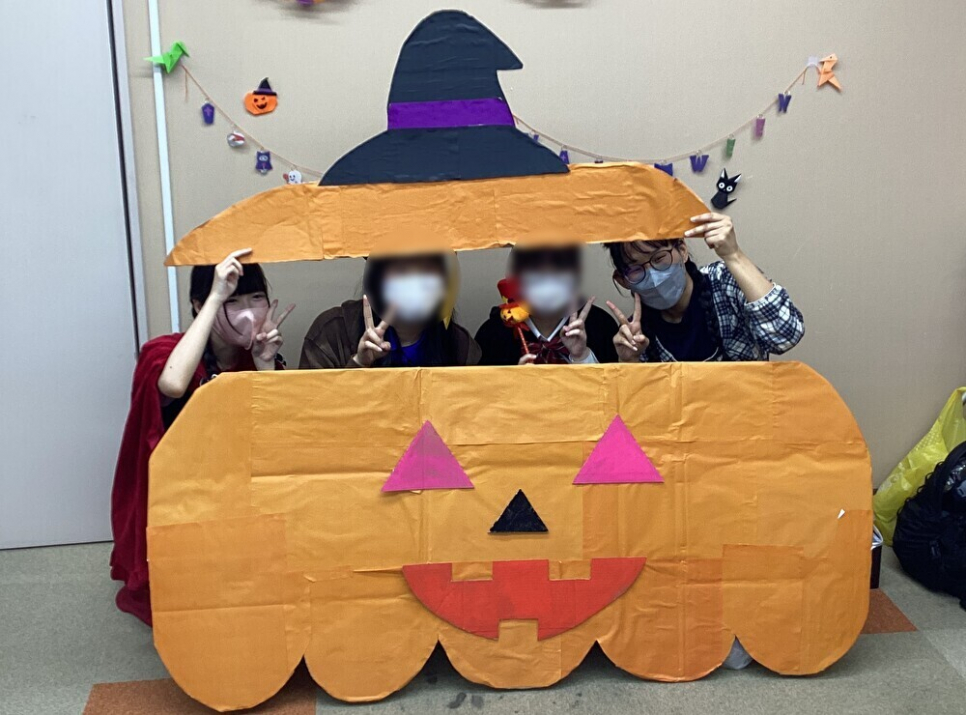 仮装では参加者がカチューシャをつけてきてくれたり、全身衣装できてくれたりと色とりどりな仮装でキャンパスがいつも以上に華やかになりました。