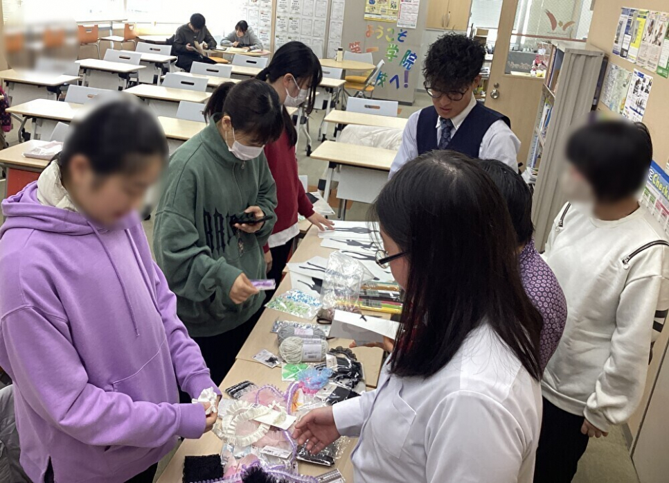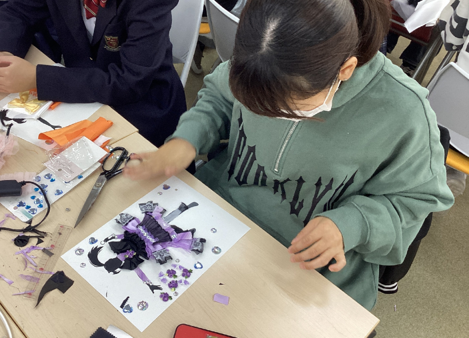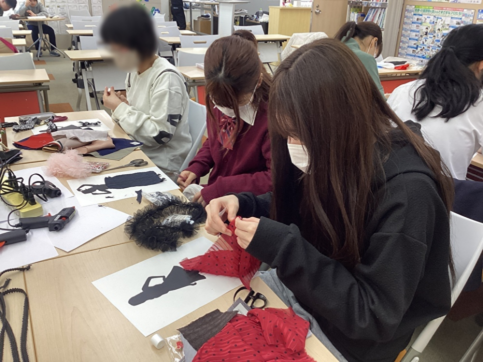 アイドルや、かっこいいデート服をイメージしたり、素材をどうい生かすかを考えたり、生徒はそれぞれ工夫しながら作業を進めていました。