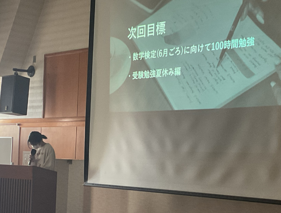 成長実感発表会は、年に2回行われ、生徒一人ひとりがこの半年間を振り返り, 成長した点や課題を見つけて発表します。
