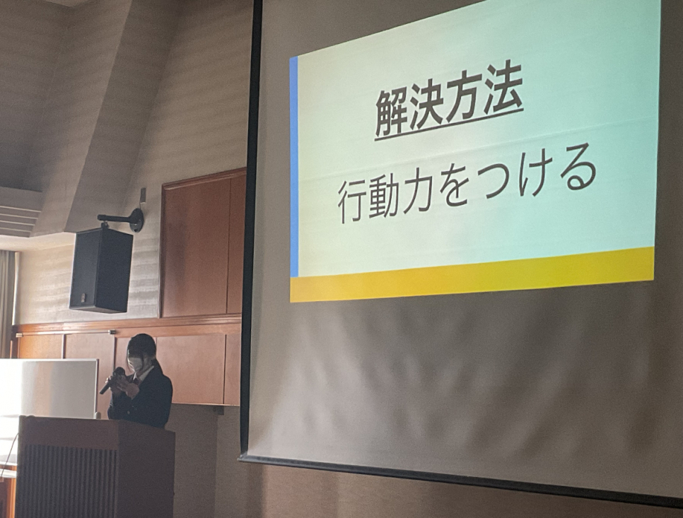 進学するのか就職するのか、進学をするにしても大学か専門学校のどちらに進むのか、就職ならどういう職業を選ぶのかなど、今後に向けての今の自分の現状や、これまでの取り組みについて発表しました。