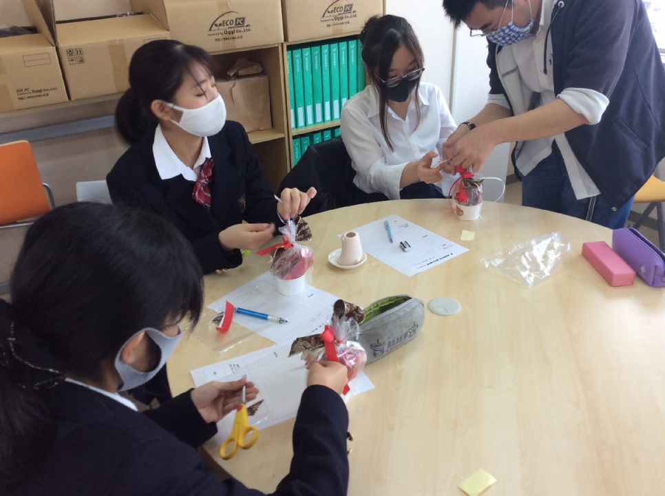 製菓・調理分野では、お菓子のプレゼントのラッピング体験を行いました。