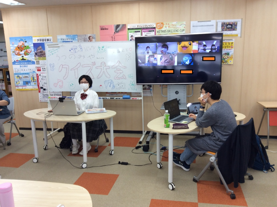 キャンパス内はもちろんですが、オンラインも活用してお家でもクイズ大会に参加することができました。